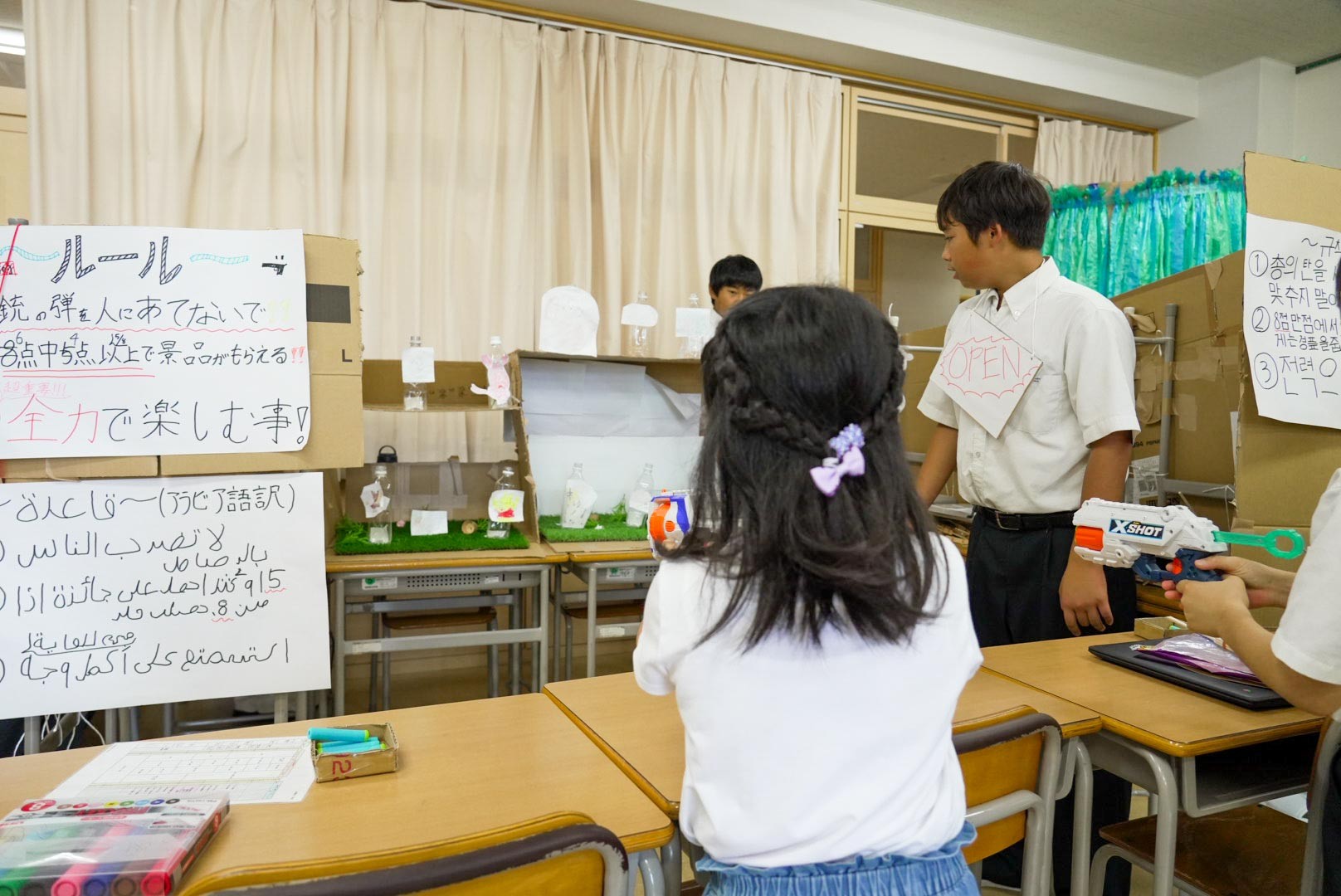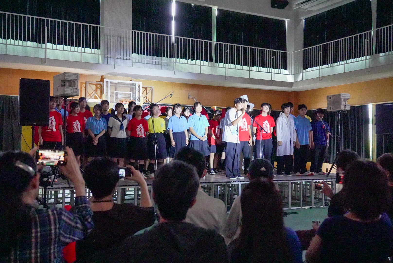 その他、P体育館ではライブさながらの「のど自慢」や、青春の心を叫ぶ「未成年の主張」などで盛り上がり、会場は満員御礼、割れんばかりの歓声でした。また、各クラスの出し物も盛況で、みんな、自分のクラスのオリジナルTシャツを着て尚志祭を楽しんでいました。