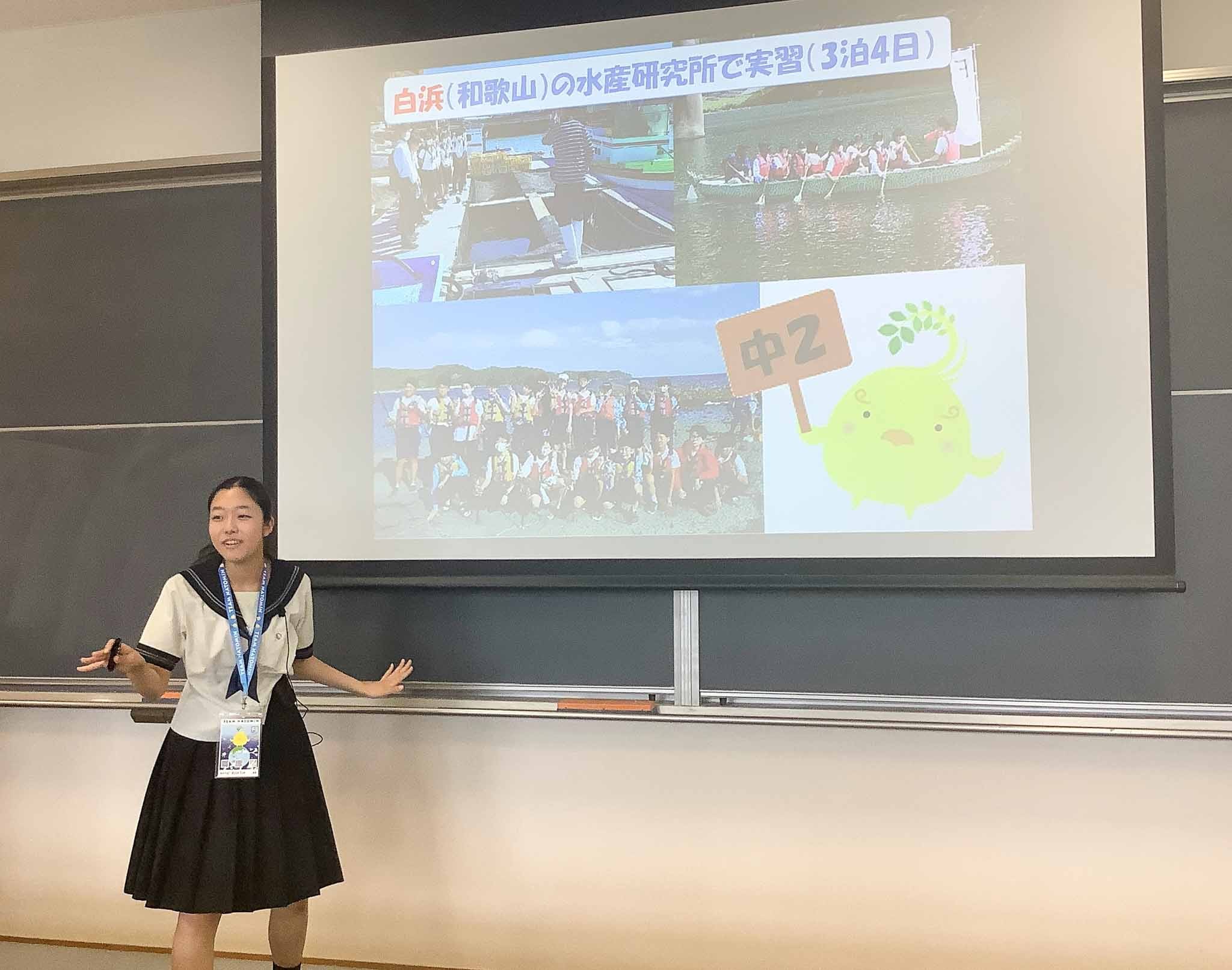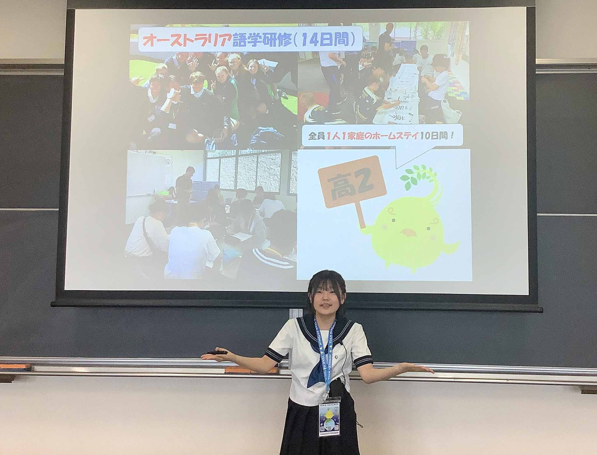 ジェスチャーを交えながら、ステージ上を移動しながら、表情豊かに本校の素晴らしさを伝えてくれました。