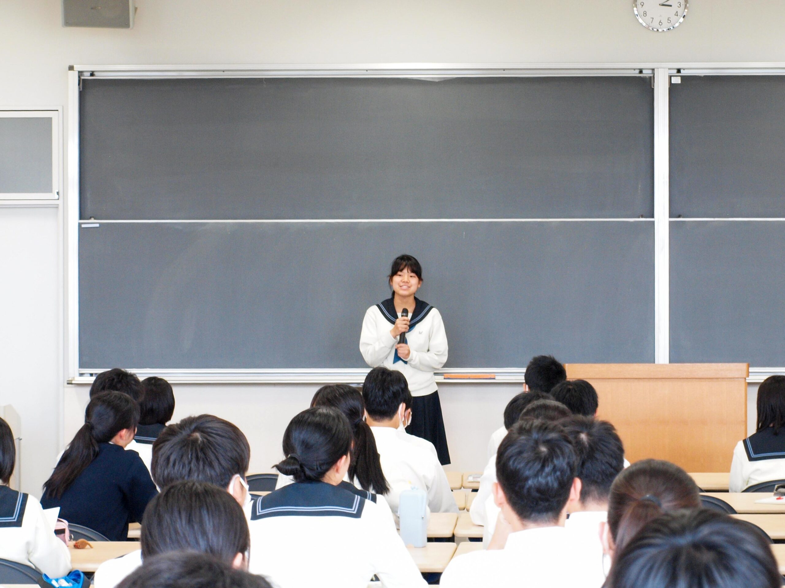 最後に代表生徒が壇上にあがり、「楽しいだけではなく、しんどい思いをすることもあるかもしれませんが、すべて楽しんでいきましょう!」と挨拶しました。