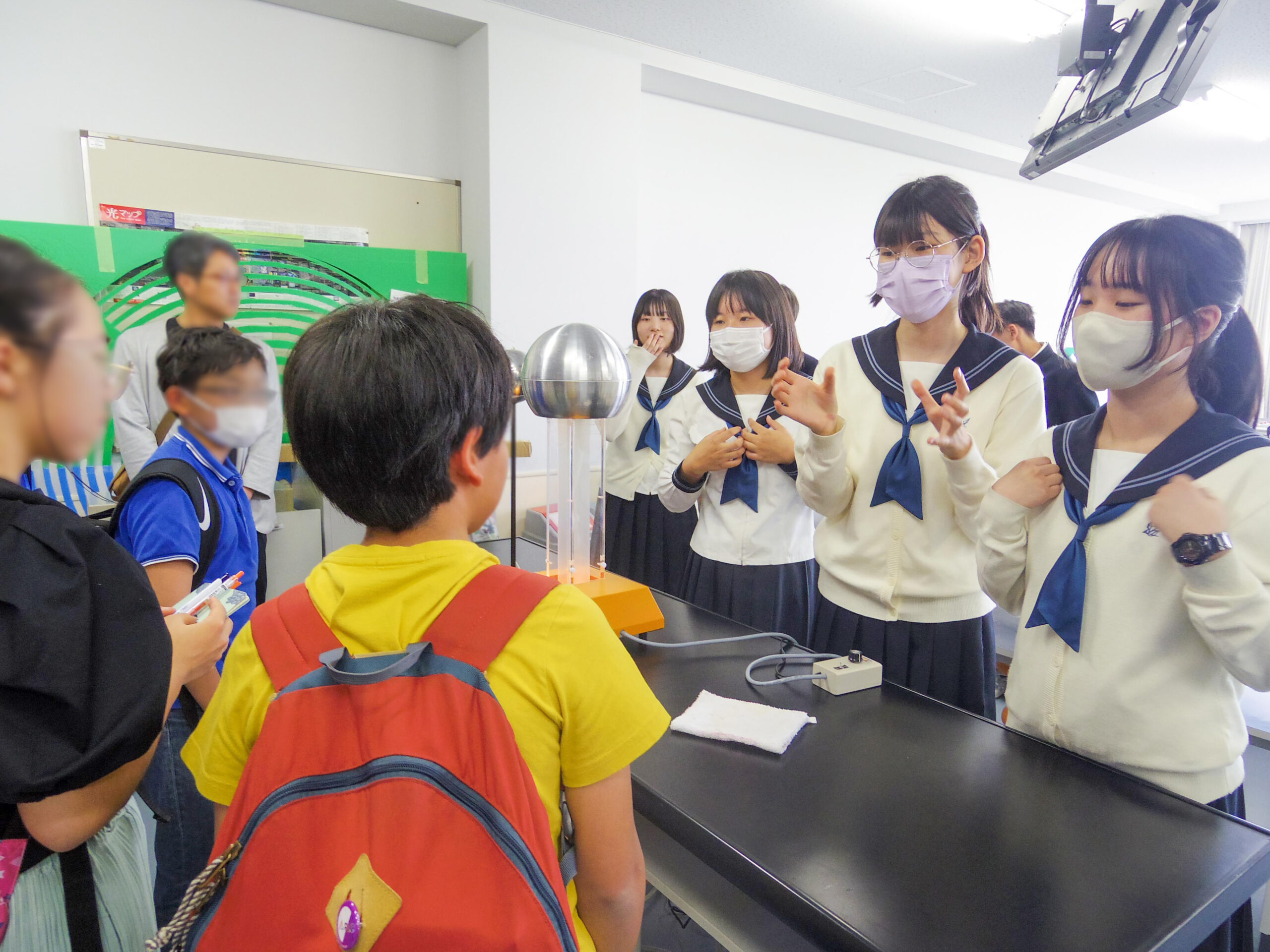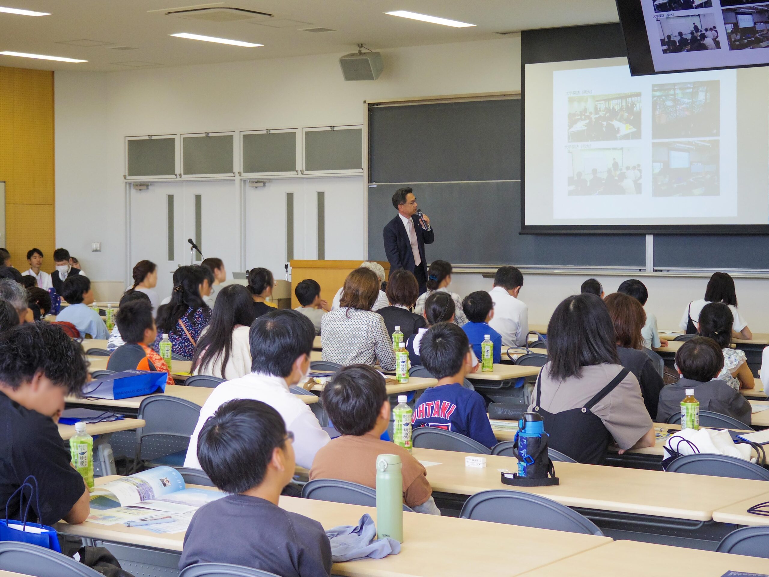 また、校内の見学ではグループに分かれて天然芝の総合グラウンドや探究ルーム、活動中の科学部などを見学し、本校の教育環境を直接見ていただく機会となりました。