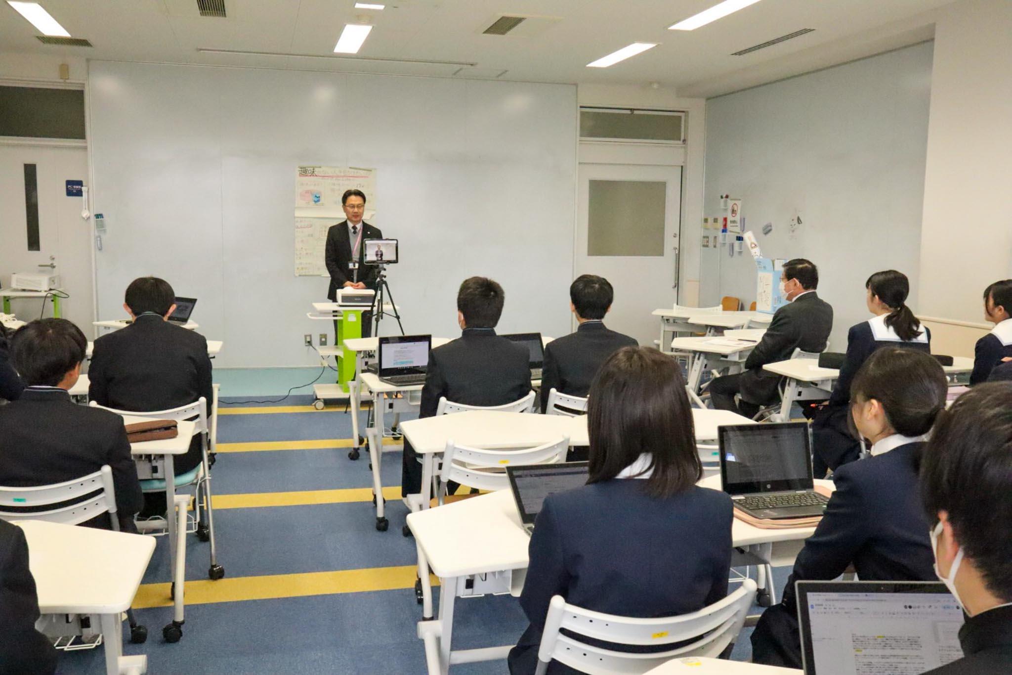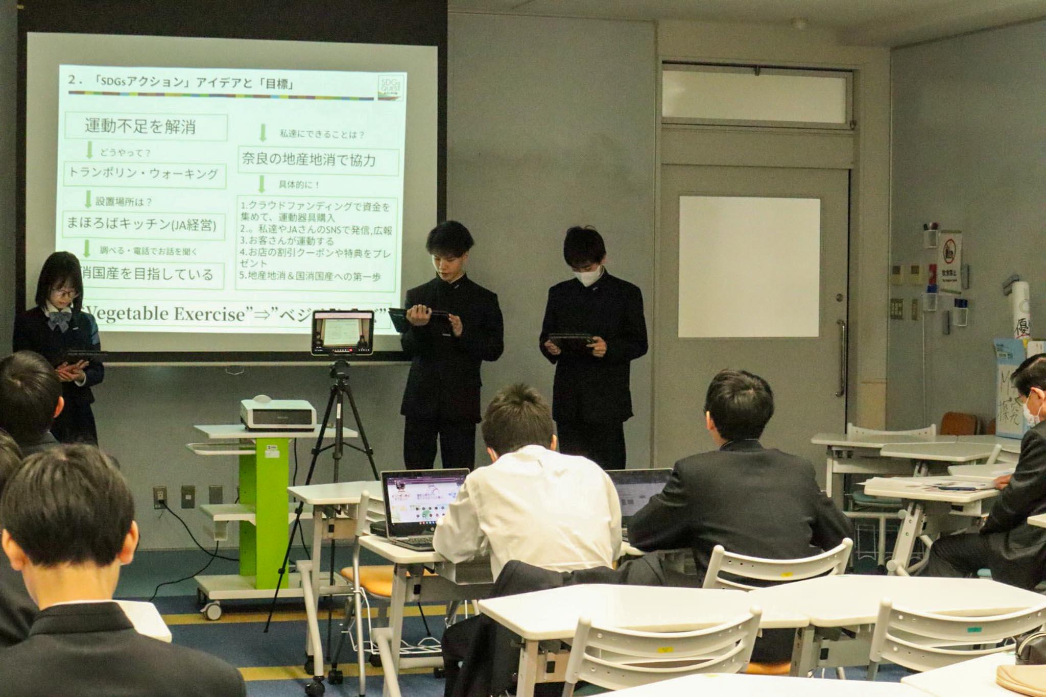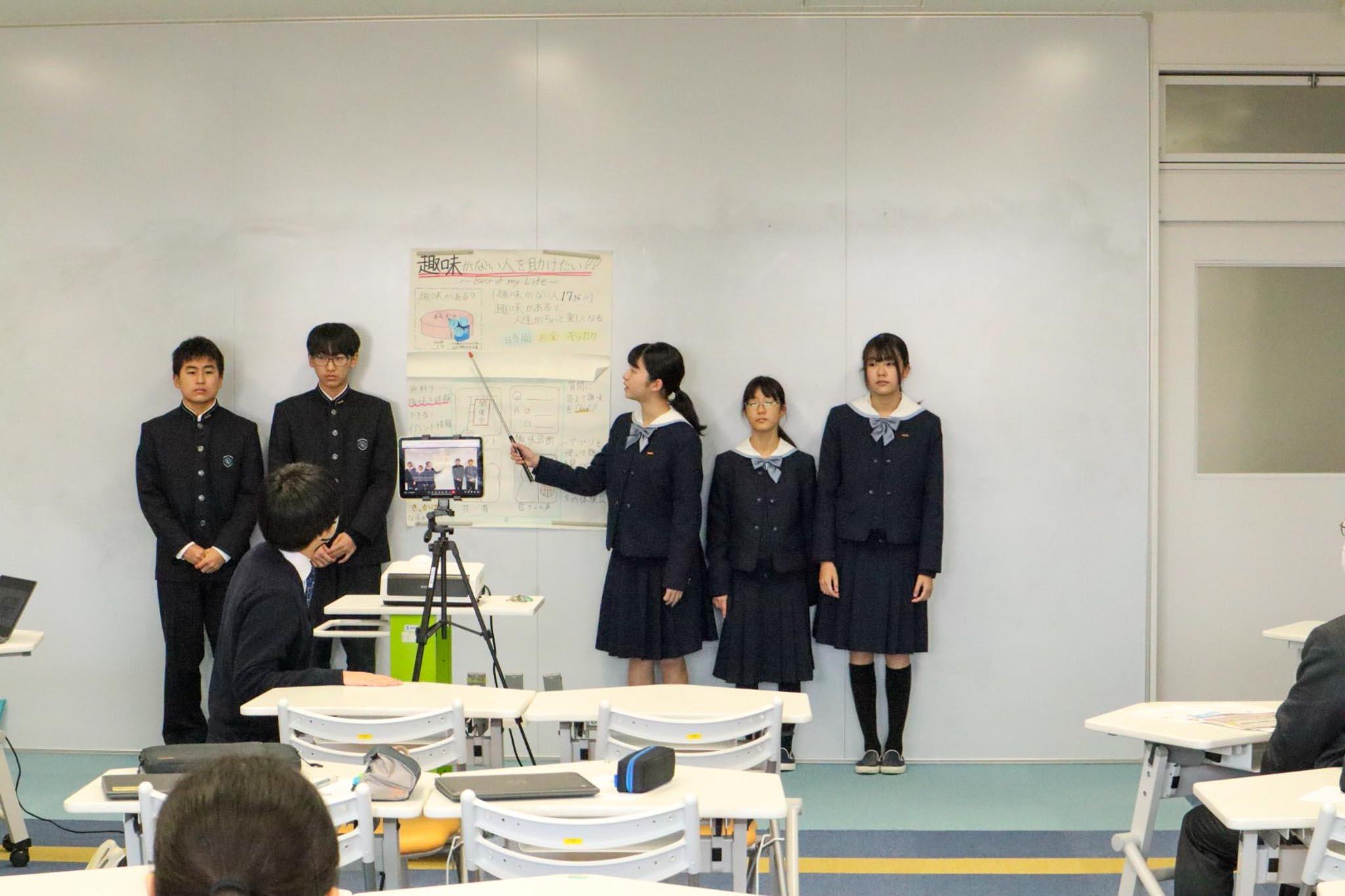 安井校長は「探究学習は普段の授業で身につけた知識や技術を活用して、答えがひとつではない課題に挑戦し、考え方の違う仲間がチームを組んで、新しいアイデアを出し合い、結論にまとめる、それをプレゼンする学習です。これは新しい価値を見出す力をつけること、また、自分自身がどういうことに関心を持っているのかを知り、専門性に早い段階から気付くことができる機会にもなる」と、冒頭に話しました。