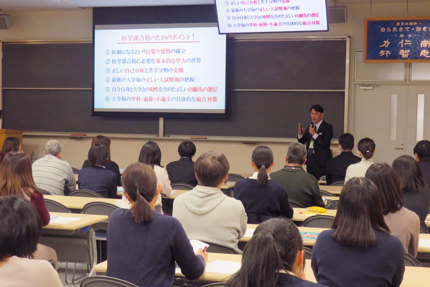 1月27日(土)、Y1(中3)~Y3(高2)学年の生徒・保護者を対象に、医学部受験セミナーを実施し、生徒・保護者合わせて約60名の参加がありました。