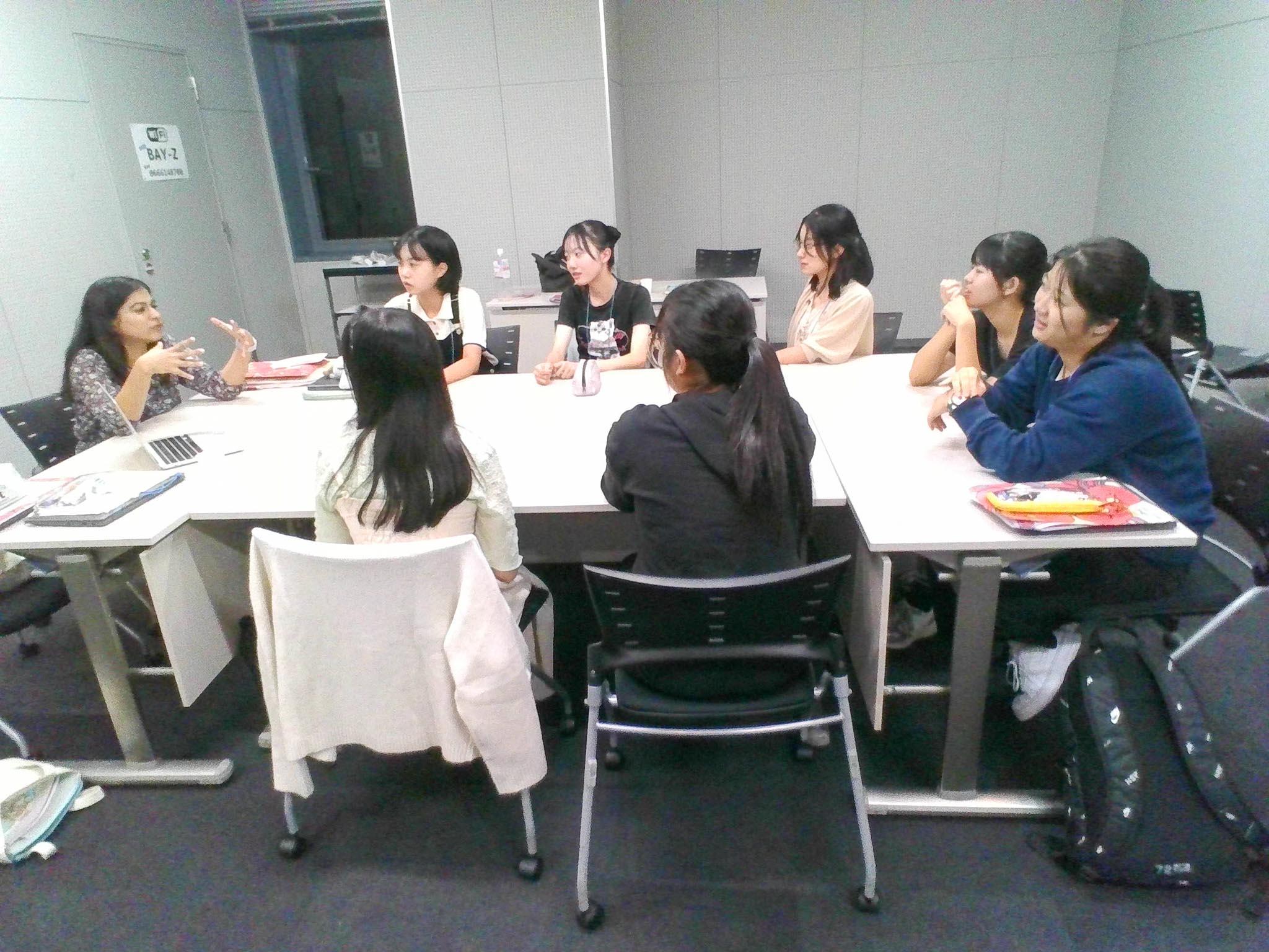 生徒達は会場の大阪市内のホテルに集合し、英語の習熟度別に20グループに分かれて、各グループに1人ネイティブの講師について頂いて、様々なレッスンを受けていました。また三食の食事も、朝の散歩中も、ずっと講師の先生と過ごしました。