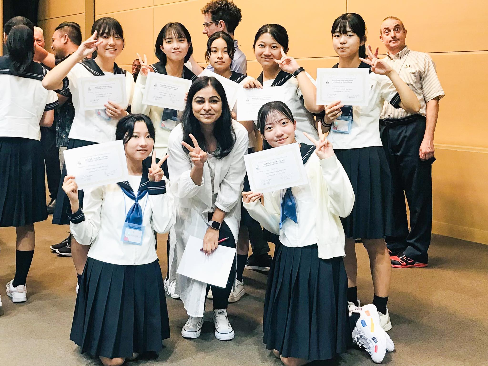 講師の先生方は、英語の細かな間違いは指摘せず、とにかく積極的に英語を話すことを求めます。その結果、最初はおどおどしていた生徒達も、最終日には皆、積極的に英語を話そうとするようになり、閉講式では先生方との別れを惜しんで、涙を流す姿も見られました。