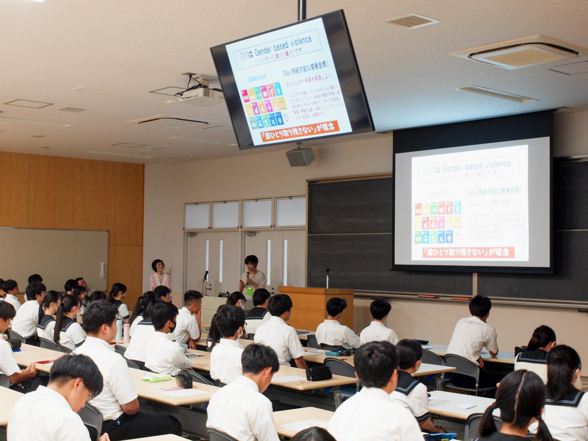 7月28日(金)、「参画ネットなら」から2名の講師の方にお越しいただき、Y3(高2)学年を対象としたデートDV防止講座が実施されました。