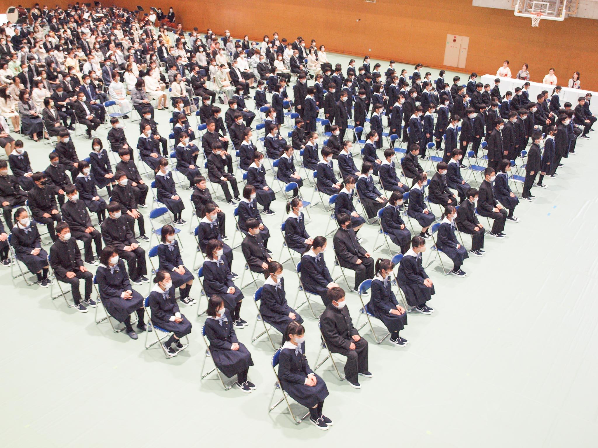 新入生はエルガーの『威風堂々』の演奏の中、入学式会場を後にし、力強く中学生としての第一歩を踏み出しました。