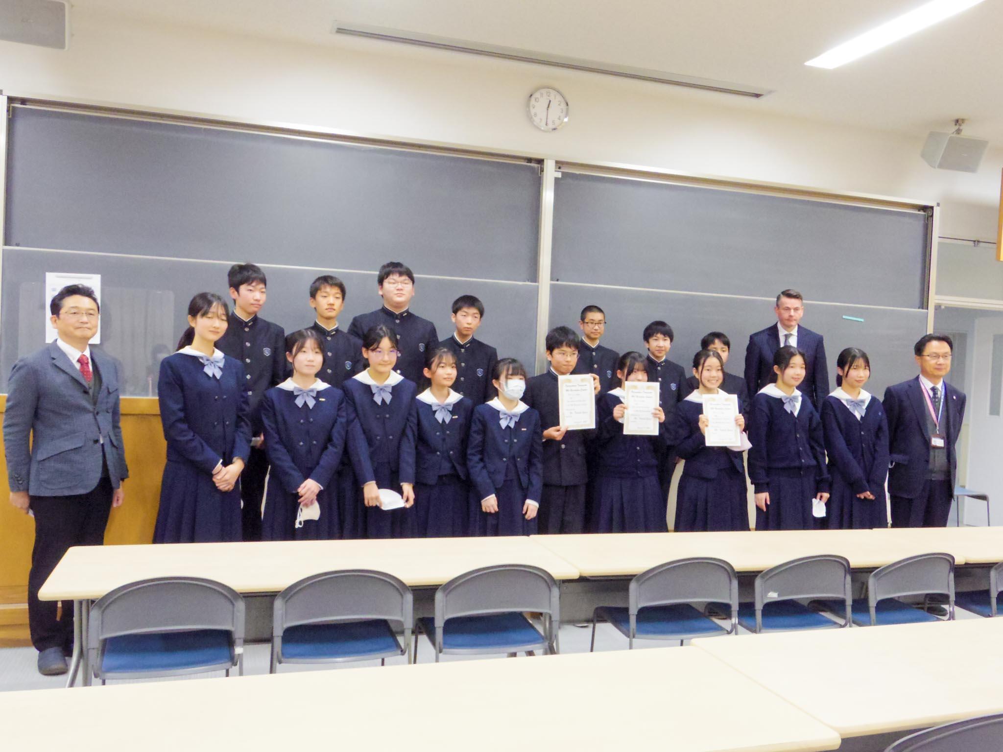 審査の結果、3名が入賞しました。記憶力や声のトーン、ボディランゲージなど総合的な力が評価されました。出場生徒の保護者の皆様にもご観覧いただき、生徒たちの成長に触れていただく貴重な機会となりました。