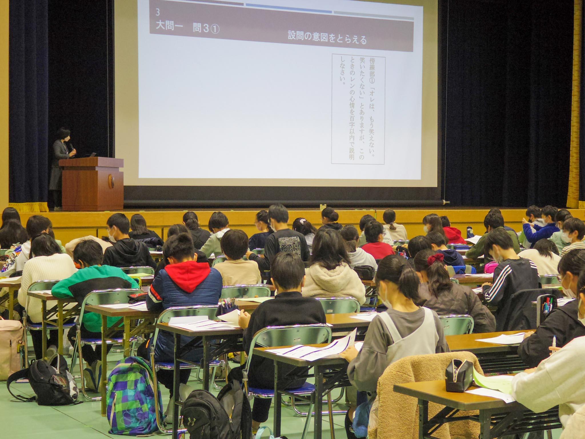 国語では記述問題を取り上げ、解答を作る際のポイントについて説明しました。また、実際の解答を紹介しながら、加点と減点についても解説を行いました。