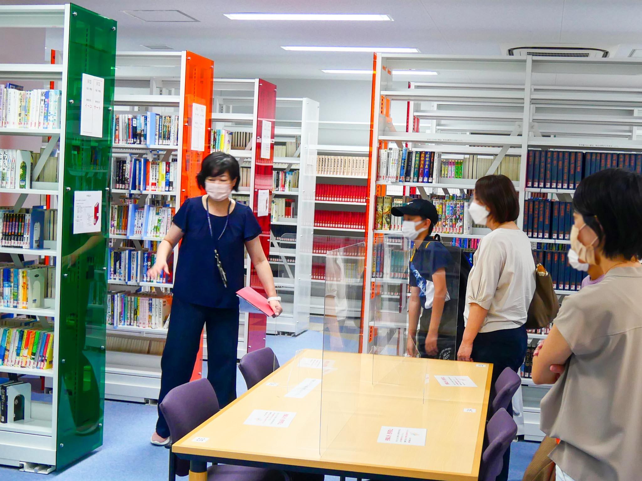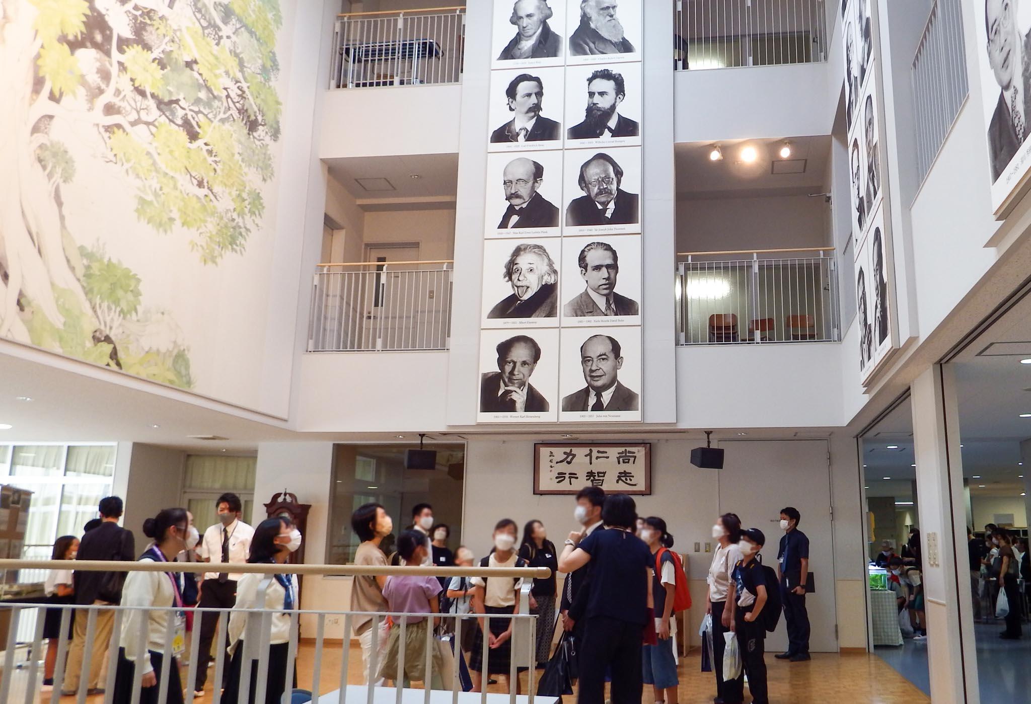 その後、学校見学希望者と入試説明希望者に分かれました。学校見学希望者は複数のグループに分かれて、教員がご案内しました。サイエンスホールをはじめ、理科実験室、図書室、探究ルームなどを見学。天然芝の総合グラウンドでは、練習に励むサッカー部の活動風景も直くで見学できました。
