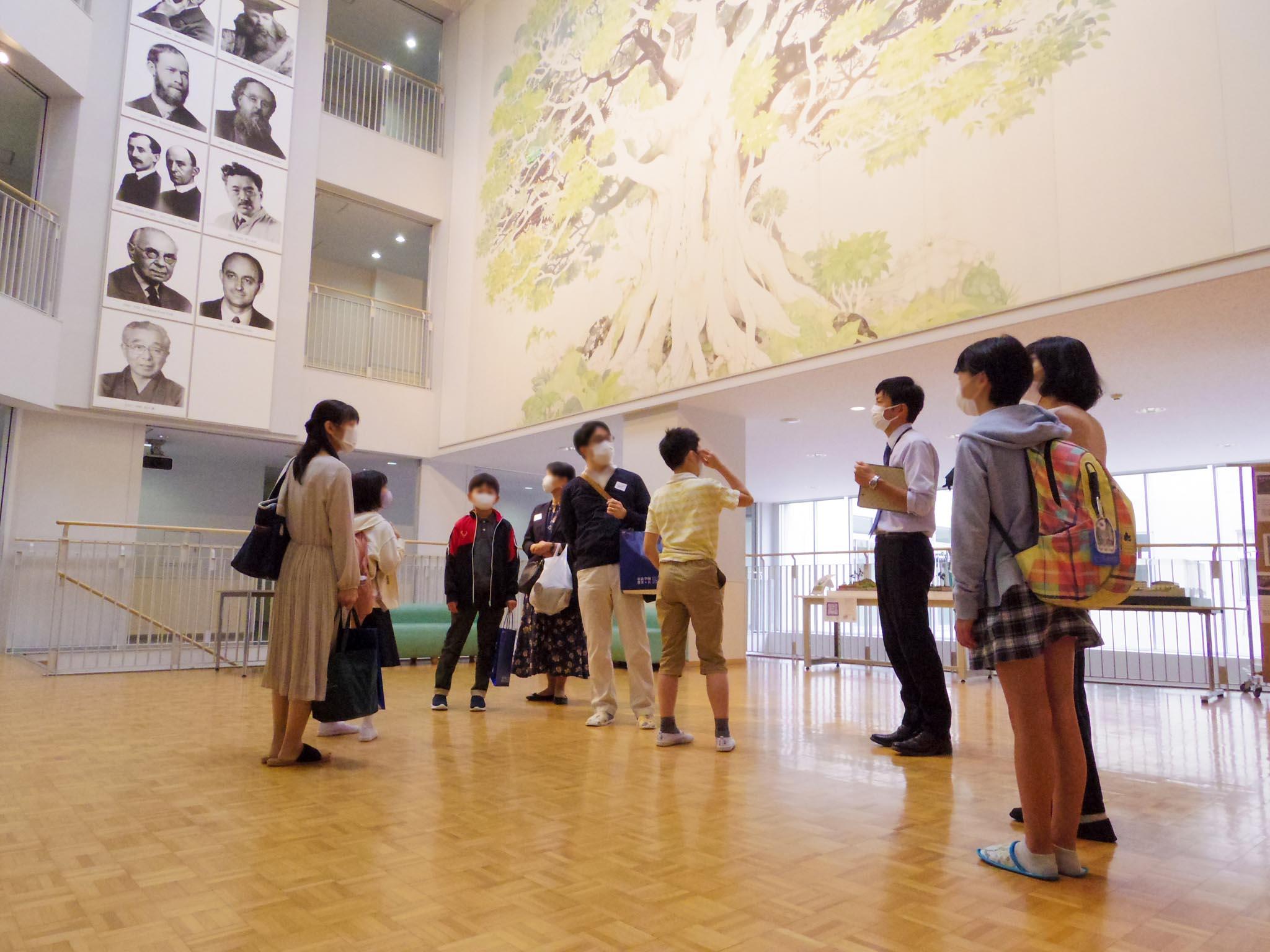 少人数に分かれての学校見学ツアーでは、本校教員の案内のもと、ゆっくりと校内を見ていただきました。この日は、中学・高校の生徒たちが参加者の皆様に校内の設備を紹介したほか、クラブ活動の練習も見学していただきました。本校の様子を分かっていただけたのではないでしょうか。