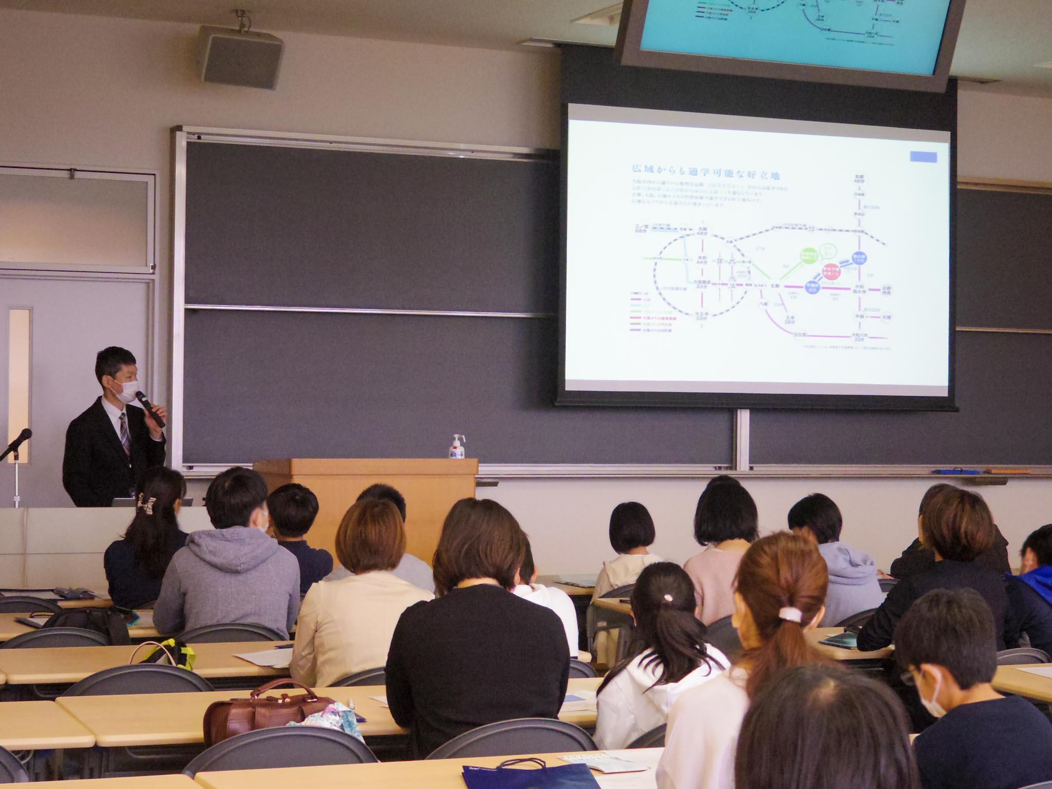 説明会では、本校が重視する「学び力」、「探究力」、「国際力」、そしてすべての学びの土台となる「人間力」について、校長から説明をしました。また広報部からは、学校生活や宿泊研修、探究活動などの学習プログラム、クラブ活動や進学実績についても説明しました。