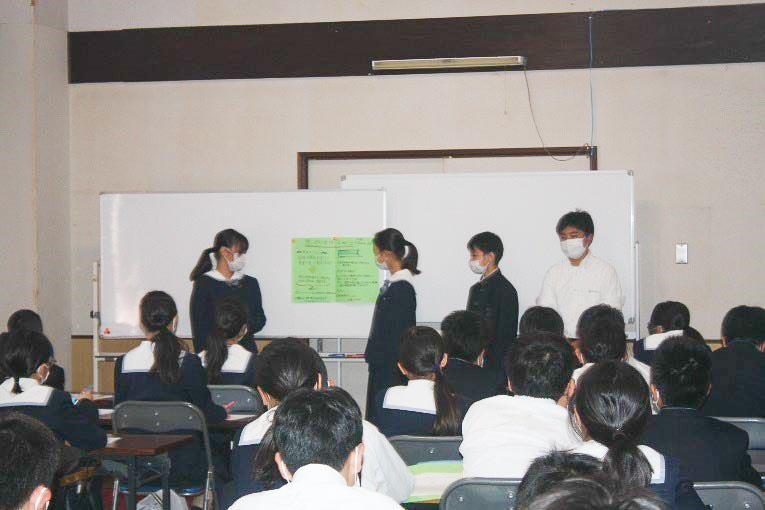 また、M3生にとって、初めての「探究活動」をクラス毎に行いました。テーマは「思いやりのあるクラスにする方法」です。グループ毎にテーマについて考え、話し合い、ポスターを作成し、プレゼンテーションを行いました。どのクラスも友達と協力しながら、前向きに取り組むことができていました。