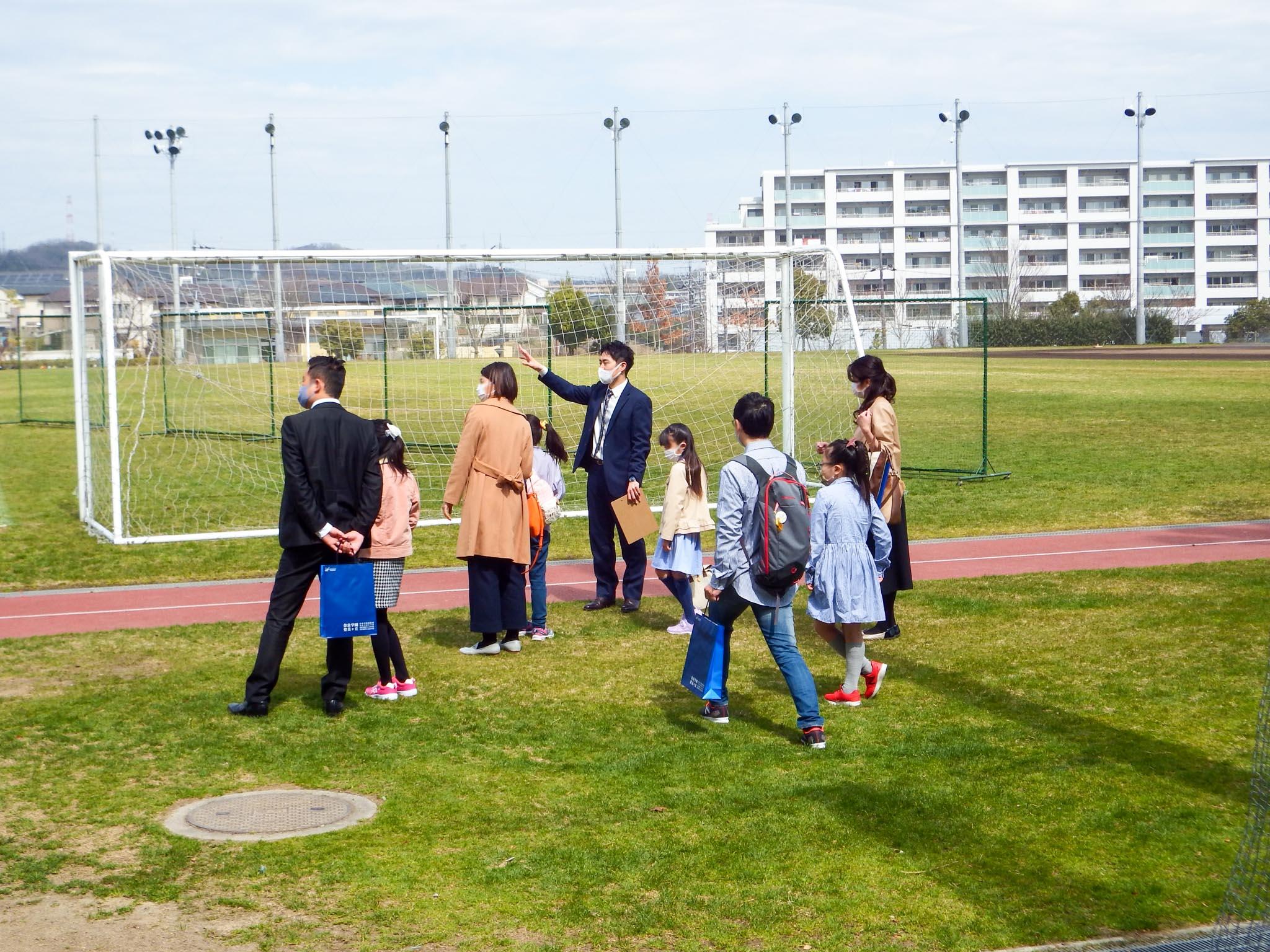 校内見学では、天然芝の総合グラウンドや、PC教室、物理、化学、生物実験室、ライブラリーなどを案内しました。少人数のグループで案内することで、案内役の教員に質問しやすく、より深く本校を知っていただけたようです。