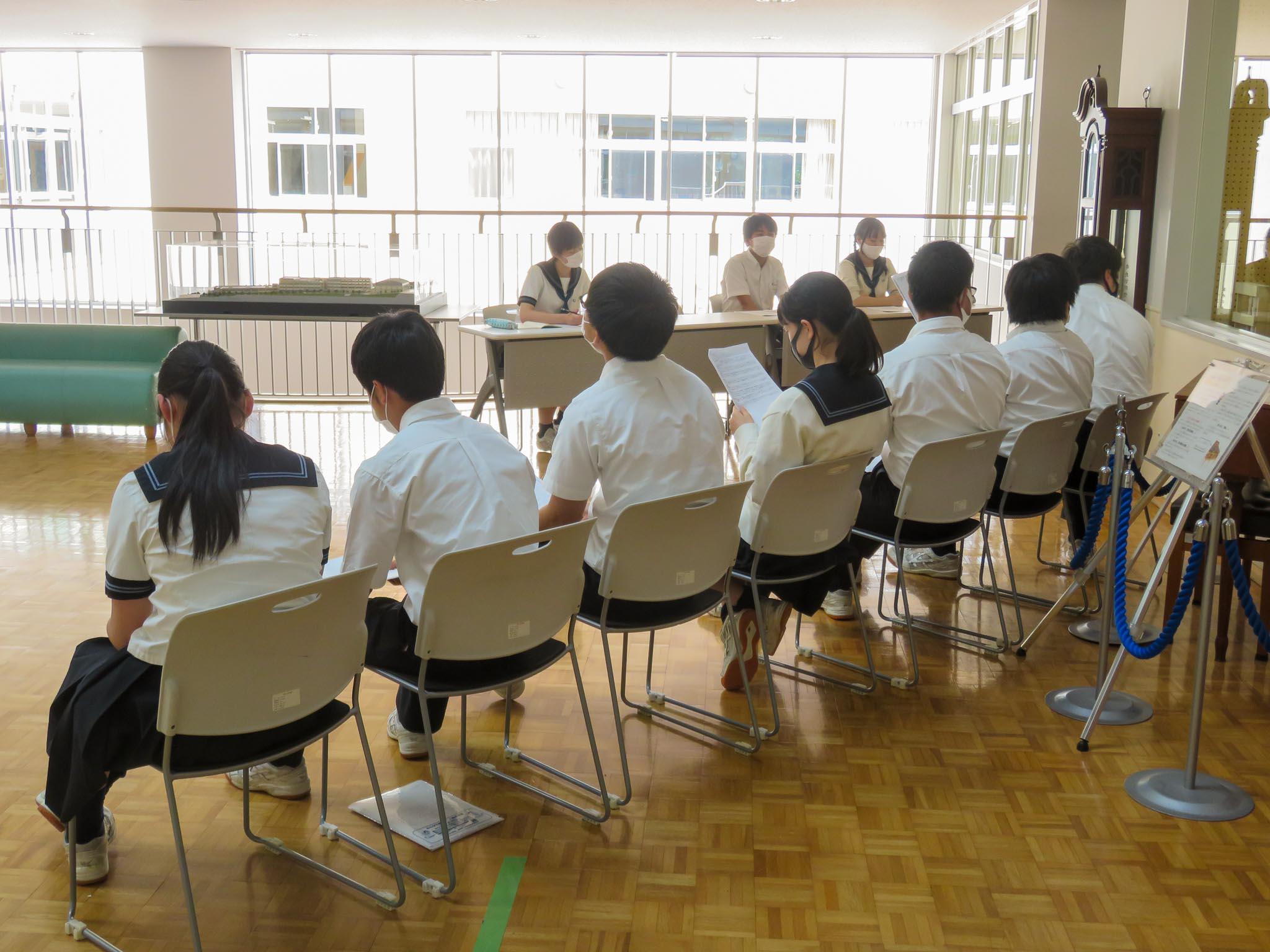 続いて「今年度の予算案」の提案があり、そして「前期専門委員会の活動方針」の報告がありました。各ホームルームでは、スピーカーから流れてくる報告を静かに聞き、時には拍手をして多いに盛り上がり、真剣に臨んでいました。運営の中心となった生徒会執行部の皆さん、そして各専門委員会の委員長さん達、本当にお疲れ様でした。