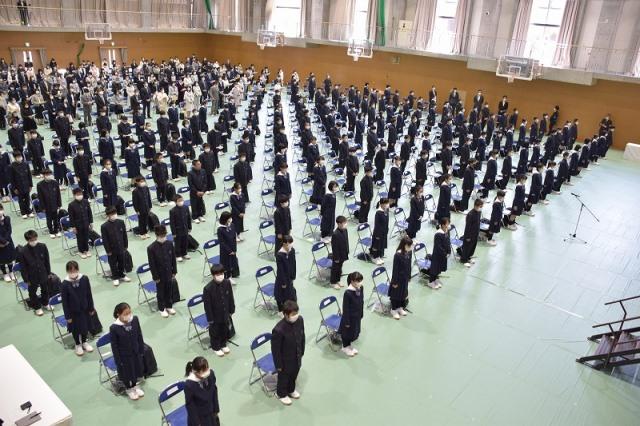 新型コロナウイルスの感染拡大防止のため、在校生の出席を取りやめ座席の間隔を空けての入学式となりました。