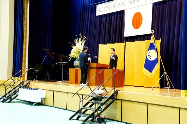 まず、卒業生133名一人ひとりの名前が呼ばれ、安井校長から各クラス代表に卒業証書が手渡されました。続いて、登翔賞などの表彰者への賞状、記念品授与が行われました。