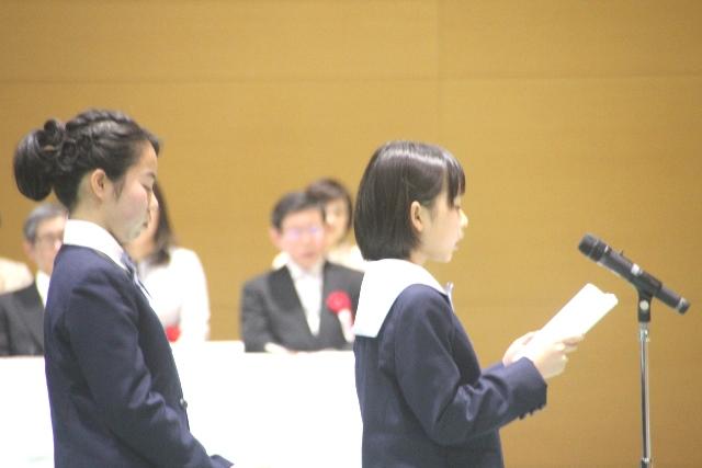 在校生代表の歓迎の言葉と新入生代表の誓いの言葉の後、室内楽部の演奏により、生徒会執行部の生徒と共に全員で校歌を斉唱し、入学式を締めくくりました。