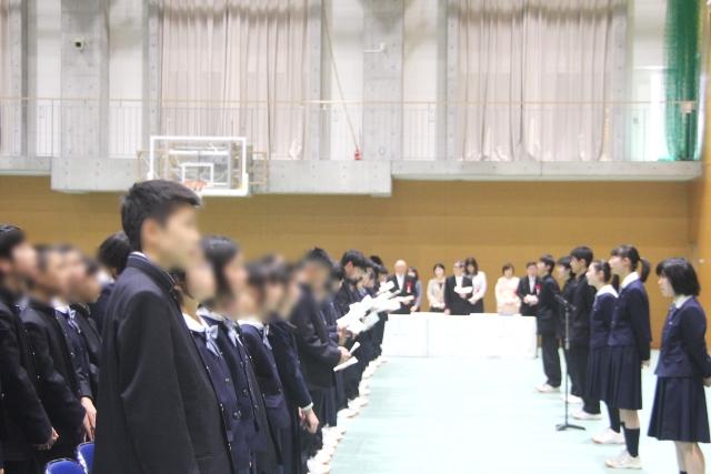当日は快晴のなか、M3(中学1年)生146名・Y2(高校1年)130名は、来賓をはじめ保護者の皆様、在校生、教職員らの温かな拍手に迎えられて入場し、安井校長から入学を許可されました。