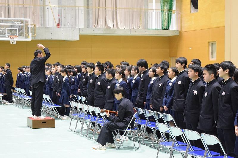 式の最後に卒業生から保護者の方々や本校教員に対して歌のプレゼントがありました。「お父さん、お母さん、先生方、今までありがとうございました」というメッセージを素敵な合唱と共にプレゼントしてくれ、心温まる素敵な卒業式になりました。