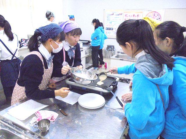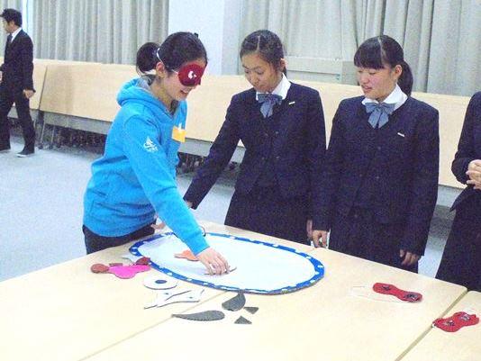 その後、クッキング、理科実験、体育の他、あやとりや福笑いといった遊びなどを通じて交流を深めていきました。身振り手振りも交えたコミュニケーションでしたが、一生懸命相手に伝えようとすることで、気持ちが通じ合う楽しさを得た生徒もいるようです。