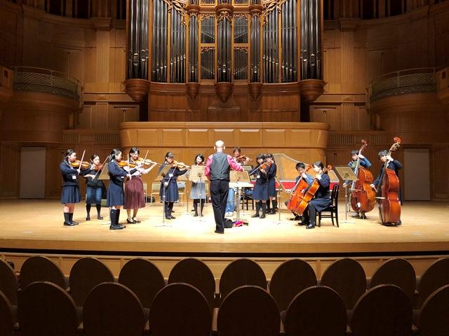 プログラムの中で、本校室内楽部の部員8名がパッヘルベルのカノンを共演させていただきました。