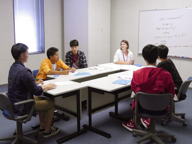 17人のネイティブの先生とともに、グループに分かれて英語のレッスンを受けました。グループ担当のネイティブの先生には、レッスンはもちろん、散歩も食事も1日中ともに過ごしていただき、原則日本語禁止の3日間でした。