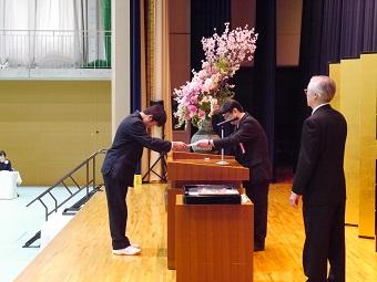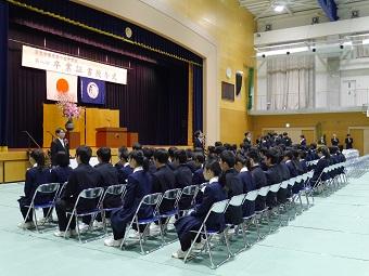 クラスごとに担任の先生から一人ひとりの氏名が呼ばれ、代表生徒が卒業証書を古川謙二校長から授与されました。併せて、3年間皆勤賞、1年間皆勤賞、力行賞の表彰も行いました。