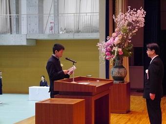 卒業生代表挨拶には、3年間の学校生活において数多くの仲間と出会えた事への喜びが溢れており、またその言葉の随所には、彼らの生活を支え、応援し続けてきた方々への感謝の気持ちがこもっていました。