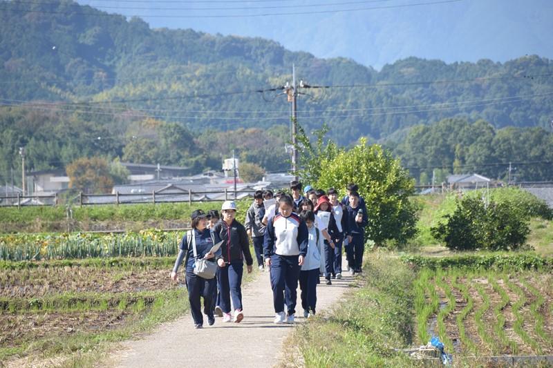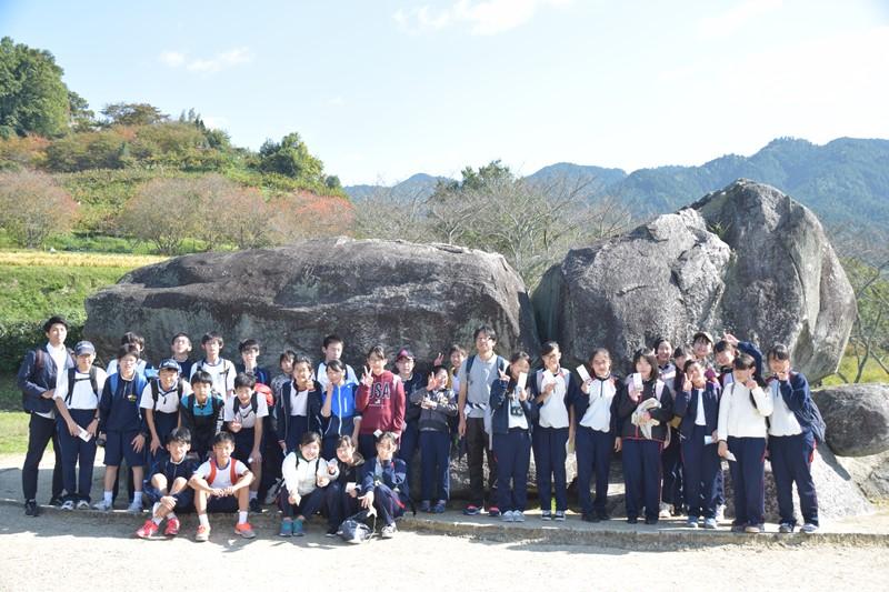 この行事は、歴史遺産の多い飛鳥地区を歩いて巡り、それぞれのスポットで生徒が事前学習した内容を他の生徒に対して発表する行事です。