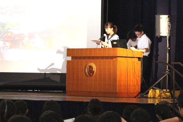 次に、校内コンテストで入賞したM3・M4の生徒による英語レシテーション発表が行われ、イソップ童話や落語の英訳などを流暢な英語で暗誦発表しました。