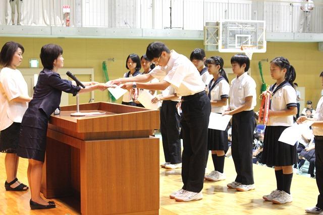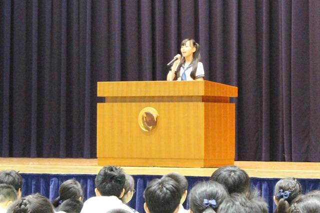 審査員の先生からM1・M2の各優勝、M3・M4の各準優勝・優勝が告げられ、入賞したクラスの代表には梅田真寿美小学校校長から賞状とトロフィーが授与されました。発表がある度に、体育館に響き渡るほどの大きな歓声が沸き起こりました。