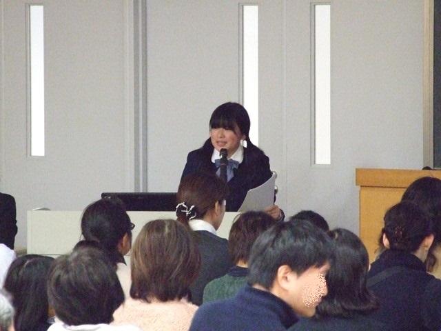 これは、次に登壇した前生徒会長のことばです。学生生活について1日のスケジュールや年間の行事や、彼女自身が中心となって企画運営した文化祭、オーストラリア海外研修など、彼女自身の経験と学校の魅力を紹介しました。