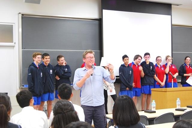 期間中は、小・中・高様々な学年の授業に参加し、交流してもらいました。Y2学年の生徒は、英語で日本文化の紹介を行うプレゼンテーションを行いました。漫才やアニメ、アイドルなどの紹介を行うグループもあり、生徒間の距離が縮まったように感じました。