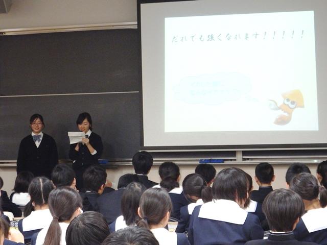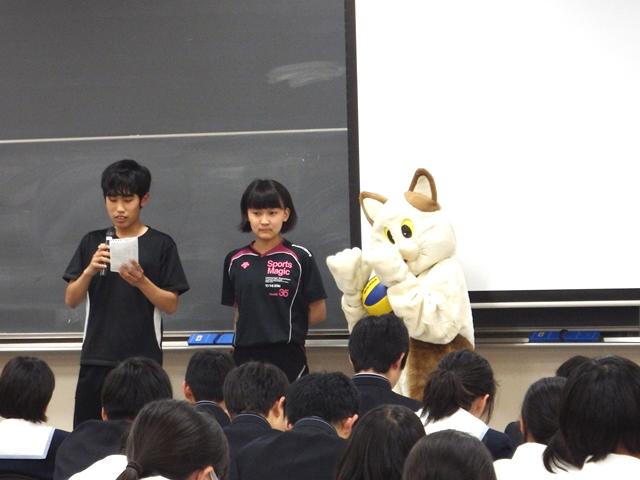 最初に柔道、硬式テニス、バレーボール、サッカー、バドミントン、バスケットボール、剣道、陸上、野球、卓球の10の運動部の紹介がありました。