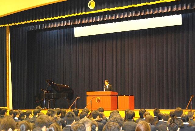 古川校長は式辞で、沖縄戦没者追悼式で読み上げられた高校3年生・知念捷さんの詩を紹介。「多くの命が失われた沖縄戦や震災などの歴史を折に触れて思い出してほしい。そして人と人が憎み合うのではなく、人と人が助け合った東日本大震災の時のように、隣人の悲しみを理解し、夢を与えられる人になってください」と語りました。