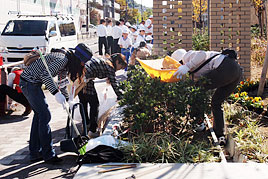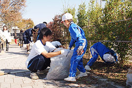 ふれあい清掃とお花いっぱい運動を行いました 2011.10.27(木) Tweet 10月27日(木)に第4回目となる「奈良学園登美ヶ丘ふれあい清掃」を実施しました。今年はそれと併せて「地域でお花いっぱい運動」を行いました。今回の活動は奈良学園登美ヶ丘に通う園児・児童・生徒と保護者、約1300名で校内や学校周辺の清掃活動を行うとともに正門付近の花壇の整備を行うものでした。清掃活動では、通学路の草引きや落ち葉拾い、道路に落ちたゴミ拾いを力をあわせて行い、綺麗にしました。お花いっぱい運動では正門前にある3箇所の花壇とプランター20基にあわせて700株のお花を植えました。登翔会の方々を中心に保護者、園児・児童・生徒と教職員が一体となって環境整備ができたことで有意義な時間を過ごすことができました。 « 弁論部が「第59回全国高等学校決勝弁論大会」で優秀賞を受賞しました 中学1年(M3)生 社会見学 »
