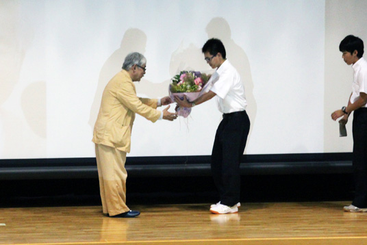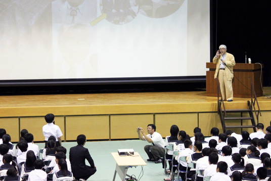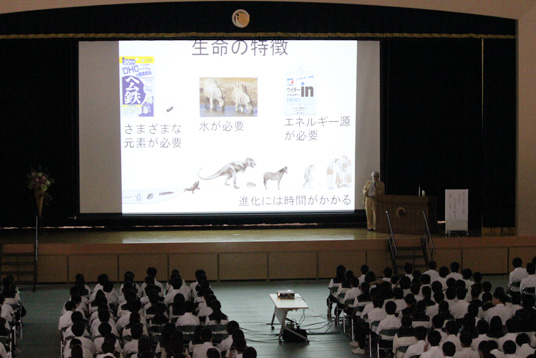 質疑応答では、聞き入っていた生徒たちから「生物はまた進化しますか?」「恐竜の全滅の原因は火山か隕石か?」など沢山の質問に、丁寧に答えてくださいました。最後に生徒が「研究に携わってみたい。生命の神秘を知ることで生きる素晴らしさを感じることができました」と感想を述べました。