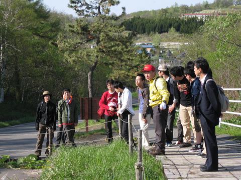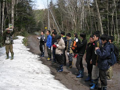 3日目は原生林トレッキング。まだ雪の残る中でしたが好天に恵まれ、150年のうっそうとしたマツの森、渓流沿いの道、立ち枯れの木の並ぶ不思議な青い池、笹の生い茂るシラカバ林、大きな滝など、ガイドさん(生徒たちの健脚に感心しておられました)の説明でたくさん勉強をしました。
