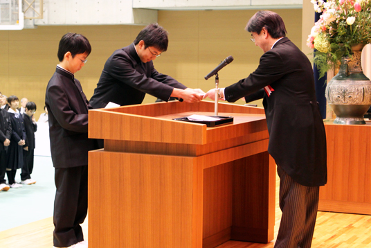 古川謙二校長は式辞で、「和の精神」「たくましく生きる力」「科学的に見る力」を教育の大きな柱だと紹介しながら東日本大震災に触れ、「生きるとは自分のためだけではなく、他人とともにあると思う。これからのみなさんの生き方を、私たち教職員は全力で応援していく」と述べました。