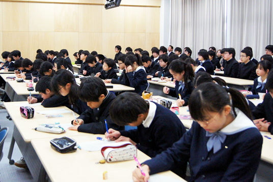 高校2年生でラグビーの練習中の事故が、中村さんの人生を大きく変えてしまったこと、そしてその障がいに向き合えるまでの苦悩、リハビリを経て高校復学から大学進学と、8年間の中村さんの想像を超える生き方が、生徒たちには大きな衝撃となったようでした。しかし、「今を生きる」をテーマに掲げ、電動車いすやPCを口で操作しながら講演する中村さんを目の前にして、生徒たちは真剣にメモを取り聞き入っていました。