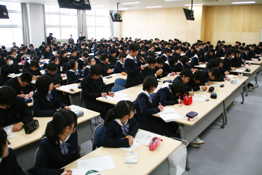 この人権講演会は年1回、各学年でテーマを決めて実施し、これまでにM3(2009年)では身体障がい者問題を、M4(2010年)では国際的な人権問題について考える講演会を開きました。今回の講演会に先立ち、Y1は2010年5月に沖縄を訪れて平和について学習する研修旅行を行い、M4は「沖縄戦について」の事前学習に取り組んできました。