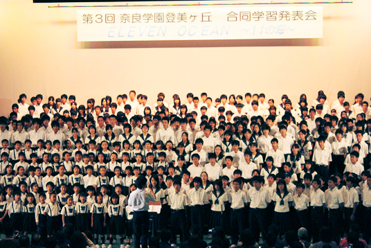 第3回目となる奈良学園登美ヶ丘幼稚園、小学校、中学校、高等学校の合同学習発表会を行いました。今年のテーマは「eleven ocean ~11の海~」。PP1~Y3までの11学年が9月初旬から、園でも学校でも、限られた時間の中で懸命に準備を進め、練習に励んできました。 |