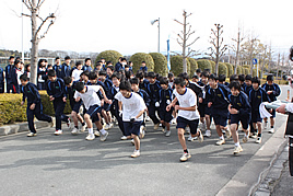 大和郡山市の矢田山周辺において、「耐寒マラソン」を実施しました。生徒たちは、開会式での「マラソンは自分との戦いである」という校長先生の言葉を胸に、矢田の運動公園を元気よくスタートしました。途中、山道を歩いてしまう生徒もいましたが、全生徒無事完走しました。 |