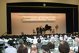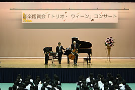 【MY】音楽鑑賞会を開催しました 2009.11.26(木) Tweet トリオ・ウィーンの方々をお招きして、音楽鑑賞会を開催しました。今回の公演は、「クラシックを楽しむ会in奈良実行委員会」の、青少年に本物の音楽を聞かせ、豊かな心を育てたいという趣旨の下、本学がその趣旨に賛同し開催に至りました。ウィーン・フィル等、世界で活躍されている方々の生演奏を鑑賞できるとあり、生徒達にとっても貴重な時間となりました。 « 合同学習発表会を開催しました 【P・M】 合同給食を行いました »