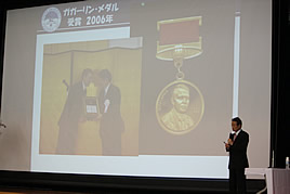 【Y】京都大学総長 松本紘先生による講演会を行いました 2009.10.31(土) Tweet 京都大学第25代総長 松本紘先生をお招きし、特別講演会を行いました。松本先生が奈良に縁深い方ということで、生徒達も身近に感じた様子で、講演に聞き入っていました。先生の生い立ちから経歴、研究内容に至るまで、色々な話をして頂き、熱心にメモを取る生徒も見られました。また、講演会の前には、松本先生と学校法人奈良学園の西川彭理事長との対談が実現しました。京都大学・奈良学園それぞれの教育のあり方について有益なお話をいただきました。 « 合同運動会を行いました 合同学習発表会を開催しました »