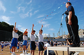 初めての運動会であるPP1の園児達は少し緊張した面持ちでしたが、お兄さん・お姉さん達が頑張る姿に「がんばれー!」と手を振る姿も見られました。 Pの生徒達は常に大きな声援を送り、運動会を盛り上げていました。また、M・Yが裏方として前日の準備や、当日の誘導係や道具係を受け持ち、合同運動会は見事な成功を収めました。