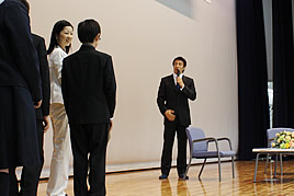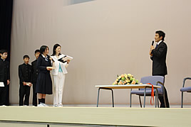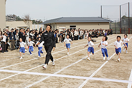 奈良学園登美ヶ丘高等学校開校記念講演会を開催しました 2009.04.03(金) Tweet 4月4日に開校する、奈良学園登美ヶ丘高等学校の、開校記念講演会を開催しました。 「理想の走りを求めて~最後に届いたメダル~」と題した今回の講演会には、北京オリンピック銅メダリストの朝原 宣治氏を講師にお招きし、ご自身の半生やオリンピックまでの道のりについてお話頂きました。また、講演会の後には奈良学園登美ヶ丘小学校、中学校の代表生徒が、朝原選手に短距離走を挑みました。日本を代表する選手と真剣勝負をした生徒達は、最後まで諦めないことの大切さを学んだ様子でした。 « 奈良学園登美ヶ丘高等学校の設置が認可されました 高校開校式と中・高校の入学式を挙行しました »
