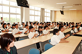 第一回レシテーションコンテストが開催されました 2008.09.10(水) Tweet 登美ヶ丘奈良学園中学校にて、第一回レシテーションコンテストが開催されました。約100名程の生徒が見守る中、各クラスで上位に選ばれた生徒が表彰され、続いて、9名の生徒による英文スピーチが発表されました。審査と上位3位までの表彰式のあと、審査員を務めていた中学校校長先生、教頭先生、小学校教頭先生から「発表者だけでなく、他の生徒達も我がことのように真剣に聞いていて感動した。こうした発表の機会は将来役に立つので、みんなにもこうした機会があるよう祈っています」と講評がありました。 « 避難訓練を実施しました 社会見学の事前学習会が行われました »