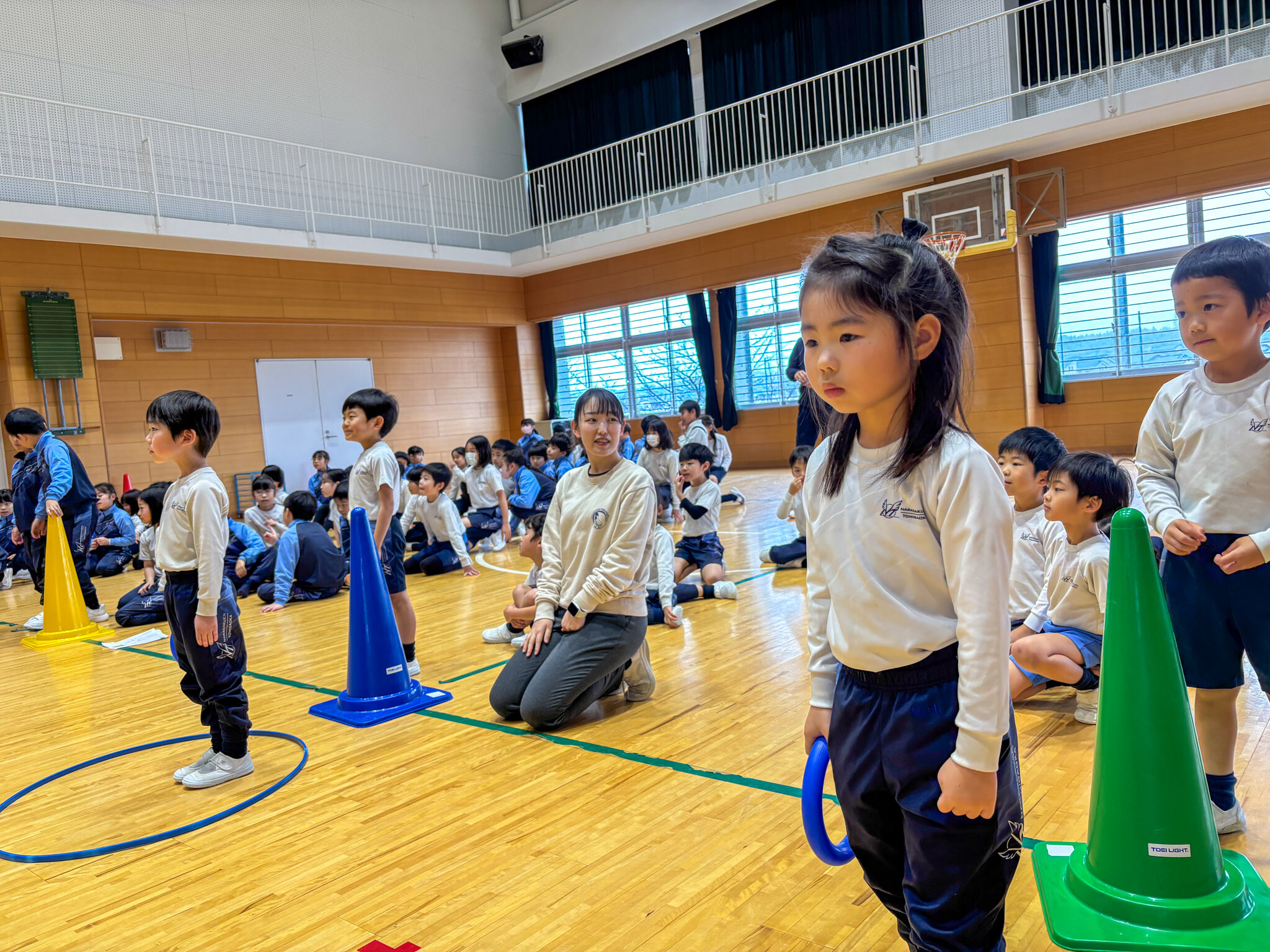 3月4日(水)には、年少・年中組の子どもたちがP1・P2生(小学1・2年生)との交流を行いました。