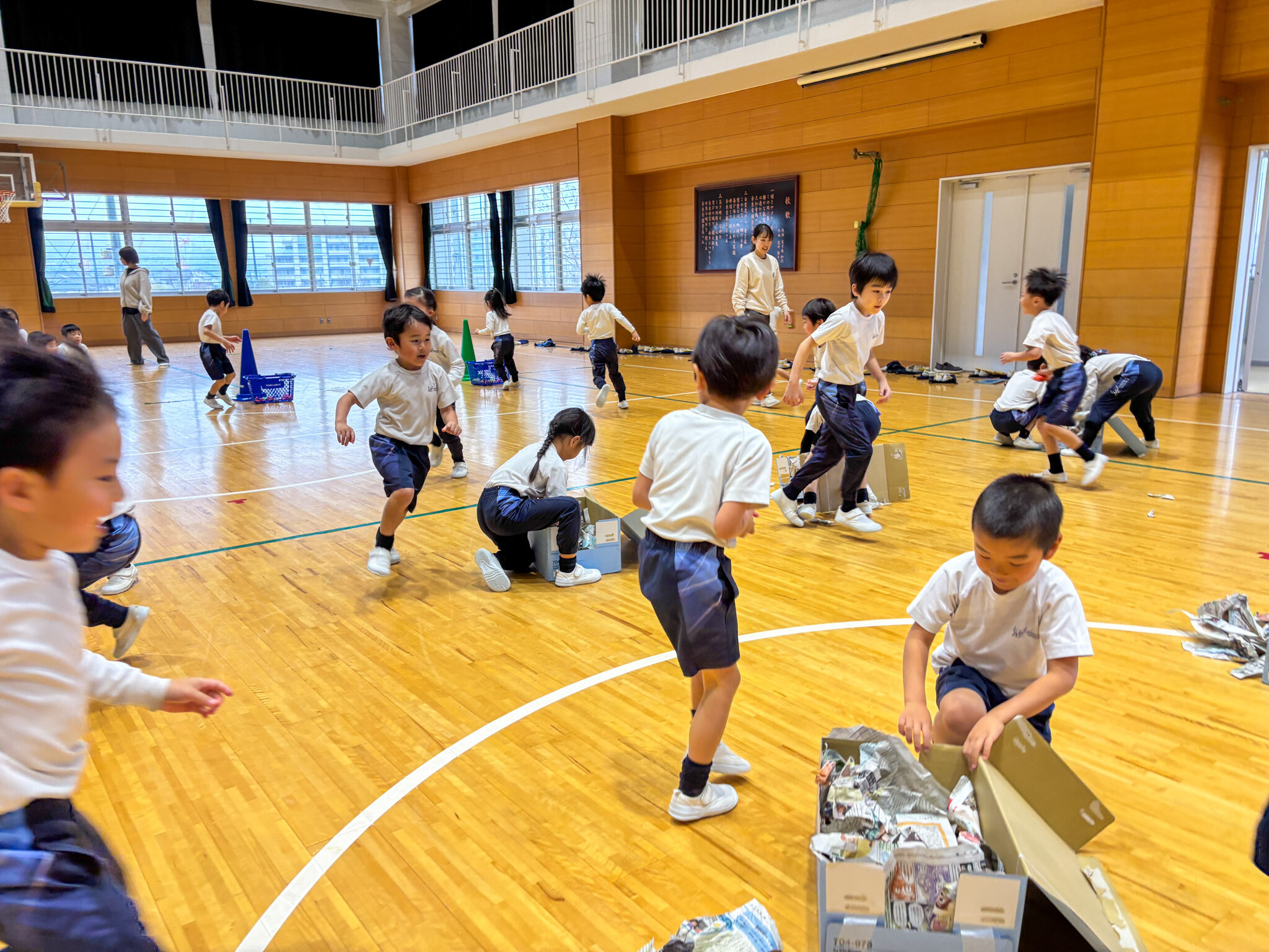 今回もP体育館を使っての交流となりました。広いP体育館を思いっきり駆け回り、楽しく過ごすことができました。